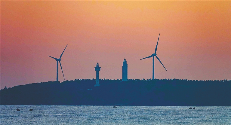 如果通过无人机从天上看,换个角度,这片海岸如同“风车岸线”——遍布岸线的陆上风机叶片,片片巨大,迎风而动,不仅发电,还织出一条美丽的风景带,引人浪漫遐想,似童话般美好。