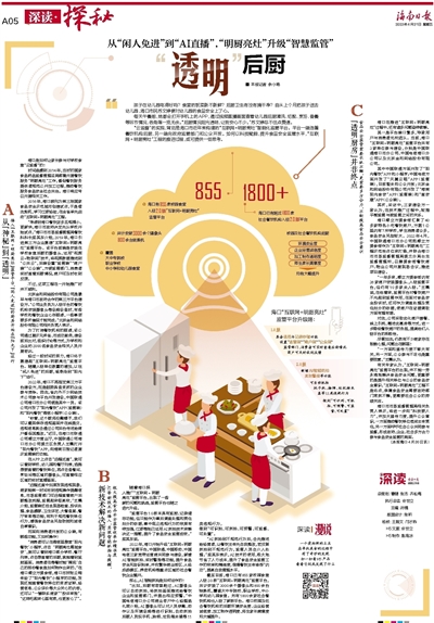 时间追溯到2014年,当时的国家食品药品监督管理总局部署开展餐饮服务“明厨亮灶”工作,督促餐饮服务提供者规范公开加工过程,推动餐饮服务食品安全社会共治。海口响应号召开展相关工作。