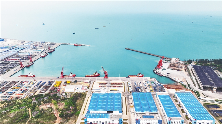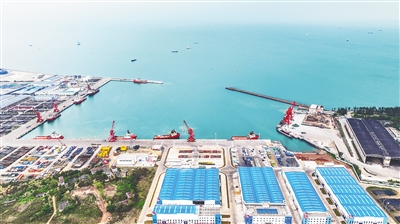 近日,航拍位于海南澄迈县马村的海南中海石油码头。该码头港区水深-10.5米,拥有9个装卸泊位、2个油品泊位和2个灰浆泊位,共13个泊位,是海南自由贸易港唯一的深海石油勘探开发生产服务基地,肩负着保障海洋油气资源开发,助力海南自由贸易港建设的重要使命。本报记者 张茂 摄