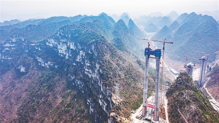当日,由贵州交建集团投资建设的六安高速花江峡谷大桥6号主塔顺利封顶。花江峡谷大桥是六安高速公路控制性工程之一,预计2025年竣工。新华社发