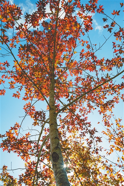 在冬春交替之际,枫香树有的还留存一些红叶,有的开始萌生出嫩红的新叶,一阵小雨过后,氤氲之气弥漫开来。此时,孟志军又捕捉到了七彩雨林的美景,因为五列木、红锥、海南柿和线枝蒲桃等本土树种的新叶,丰富了热带雨林的“调色盘”。