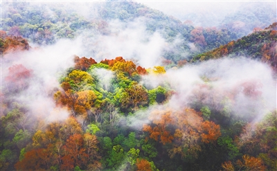 海南大学林学院研究生张中扬说,他无数次经过俄贤岭的一处山坳,唯有一次的景致最为动人——那是一次凌晨上山途中的偶遇,阳光刚刚喷薄而出,温柔地泻下薄薄的金色,云雾被困在山下,远处的山脉淡淡地映衬,近处的松树青翠欲滴,几重景象的融合让人心旷神怡……