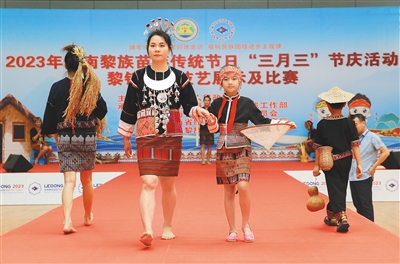 近日,为庆祝2023年海南黎族苗族传统节日“三月三”的到来,我省部分市县开展少数民族传统体育竞赛、非遗技艺物品展示等系列活动。