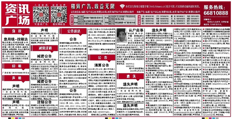 ●海南华页投资有限公司(统一社会信用代码:91460000MACGGJHL27)遗失公章、财务专用章,声明作废。