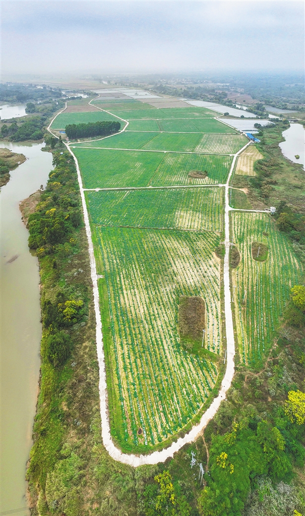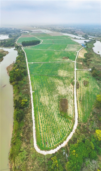 俯瞰儋州市中和镇和新州镇交界的江心岛农田。该片区农田是儋州全域土地综合整治项目之一,目前已流转部分土地用于旱改水,并开始试种。 近年来,儋州以全域土地综合整治为抓手,采用“土地流转+土地整治+产业导入”灵活组合模式,做好农村土地文章,助力乡村振兴。