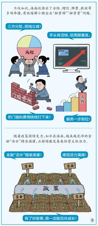 企业是稳经济、稳就业的重要力量。护企业就是护发展、护民生。中小微企业量大面广,尤需“精准滴灌”。近年来,海南以一系列举措精准“破题”,如推出“海知贷”,让看不见、摸不着的“知识产权”,获得金融机构青睐,激发企业创新活力;同时,推出分险、增信、降费、提效等多项举措,有效缓解小微企业发展难题。