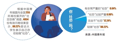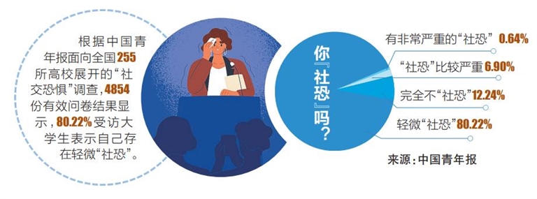 “身边的朋友常常说自己是‘社恐’,我觉得我也是,因为我不喜欢参加社交活动,必须参加集体活动时,表现得也很拘谨,特别在人多的场合讲话,我会感到很紧张,手心冒汗,心跳加快。”在海口工作的“90后”陈洁(化名)对“社恐”并不陌生,甚至认为自己是“社恐”中的一员。