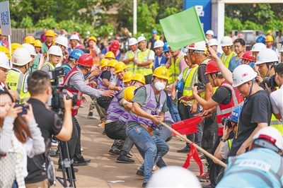 团队合作的拔河比赛、精细焊接的钢铁焊件、规整的砖砌造型、激烈的知识竞答……在比赛现场,各单位参赛选手在不同比赛项目、各自擅长领域中拼技能、显身手、展风采。
