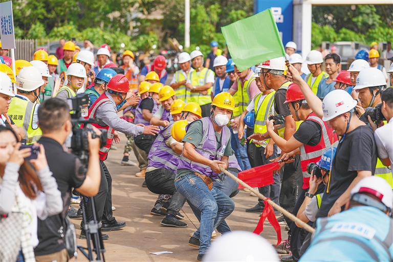 4月28日,在“五一”劳动节即将到来之际,海南发展控股置业集团有限公司在海口江东新区开展建筑行业技能大比武活动。