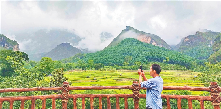 4月29日,游客在昌江黎族自治县王下乡游玩,领略田园诗画的美丽风光。本报记者 陈元才 摄