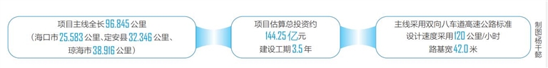 据悉,该项目为改扩建工程,路线起于海口市龙桥枢纽北侧,经海口、定安、琼海等市县,止于东线高速与博鳌机场进出场路交叉设置博鳌互通。主线全长96.845公里(海口市25.583公里、定安县32.346公里、琼海市38.916公里);全线设置桥梁4.608公里/109座、互通16座、服务区3处、养护工区3处、连接线3.8公里/1条。