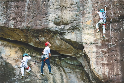 “抓好扶手、踩好脚蹬,不着急,一步步来。”5月6日,琼海白石岭景区游人如织,在飞拉达项目入口处,工作人员一边为游客绑好安全绳索,一边提醒道。现场,不少游客扶着岩壁拾级而上,慢慢攀向山顶。尽管“五一”假期结束,但景区热度不减。