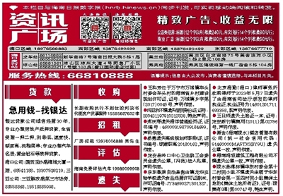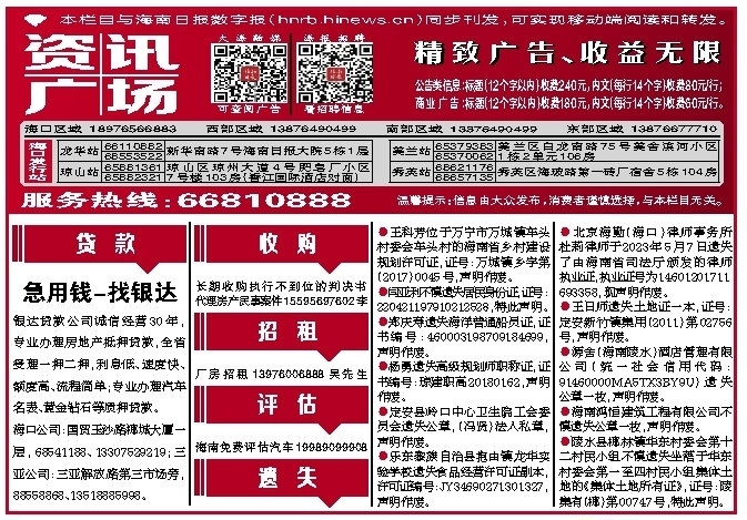 海口公司:国贸玉沙路椰城大厦一层,68541188、13307529219;三亚公司:三亚解放路第三市场旁,88558868、13518885998。