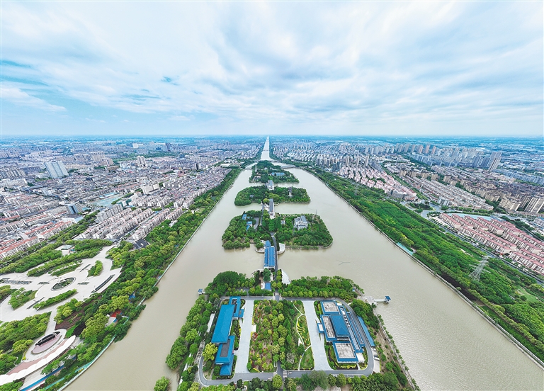 江都水利枢纽位于江苏省扬州市境内京杭大运河、新通扬运河和淮河入江水道交汇处,南濒长江、北连淮河,是南水北调东线工程的源头,被誉为“江淮明珠”,是目前我国规模最大的电力排灌工程、亚洲最大的泵站枢纽。图为5月7日在江苏省扬州市拍摄的江都水利枢纽。新华社发