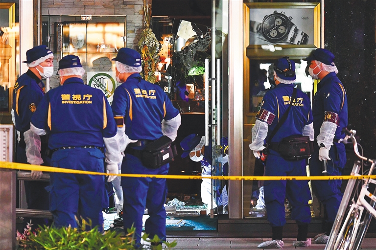 当日,数名蒙面歹徒闯入位于日本东京繁华商业区银座的一家高档手表店持刀威胁店员,在众目睽睽之下砸碎展示柜玻璃抢走商品后逃走。