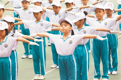 为丰富校园文化生活,培养学生集体观念和团队意识,增强学生身体素质,儋州市那大第一小学近日举行一年级至四年级队列队形、七彩阳光广播体操和礼仪操比赛。