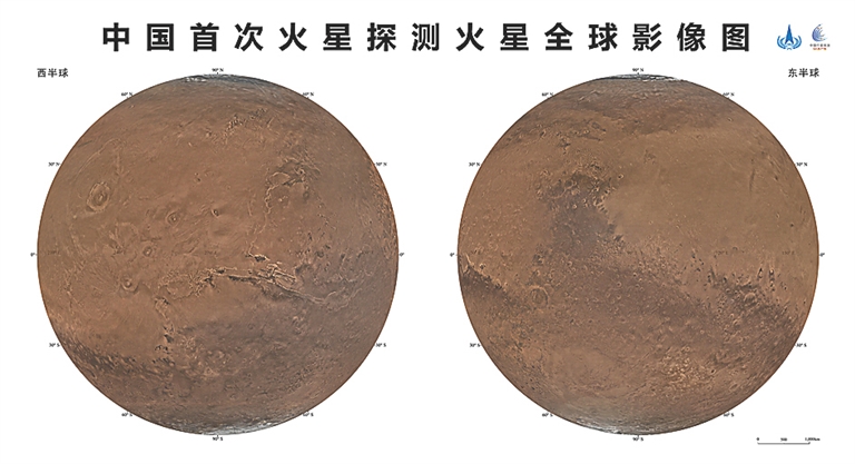 从2016年我国启动火星探测计划,到2020年“天问一号”火星探测器的一飞冲天,再到2021年“祝融号”火星车成功软着陆于火星表面,直到现在火星全球影像图的发布。这意味着首次火星探测任务一步实现火星环绕、着陆和巡视探测目标圆满完成,也为下一步火星探测计划打下了坚实的基础。