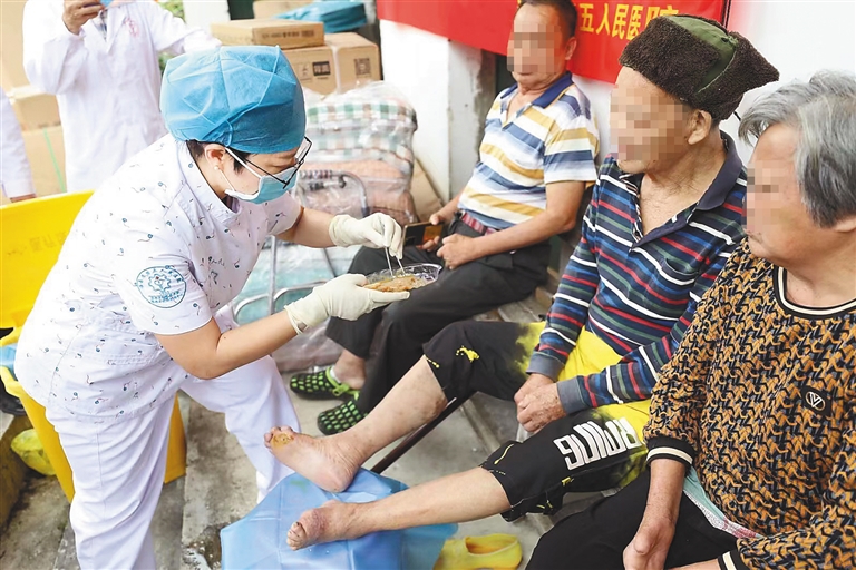 她带队开展“麻风病人难愈合创面救助行动”,每月深入各麻风院村下乡巡回,进行康复指导、宣讲,提升了基层医护人员服务技能。邢少云团队开展的“麻风畸残预防与康复培训”,院内院外共进行464人次有针对性的护理培训,提高了全省麻风病护理从业人员服务能力,培养和输送了一批专业型临床麻风护理骨干。
