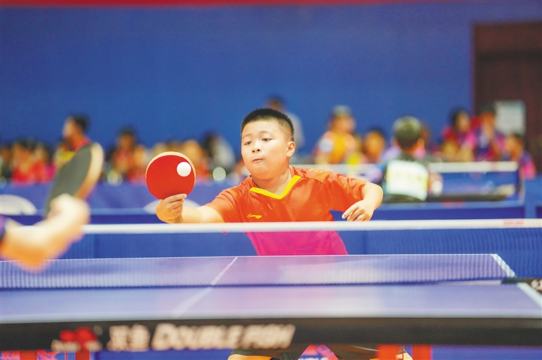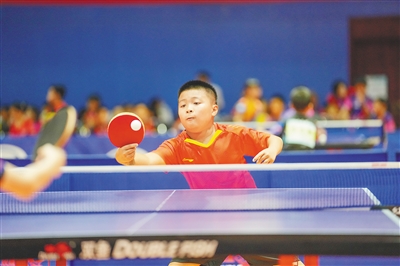 5月11日至16日,2023年海南省青少年乒乓球赛(U10)在国家体育训练南方基地(海南白沙·综合)进行。据了解,此次比赛有来自海口、三亚、儋州、琼海、屯昌、白沙、万宁、五指山、东方等市县及学校、俱乐部的13支代表队共100余名运动员参加。图为5月14日选手在比赛中竞逐。本报记者 李天平 摄