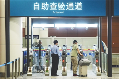 图为5月15日,旅客在沈阳桃仙国际机场通关。