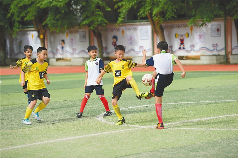 日前,海口市英才小学举办第二届校园足球联赛。随着裁判员口哨声响起,足球在学生们脚下来回滚动,众多炙热的目光汇聚在球上。