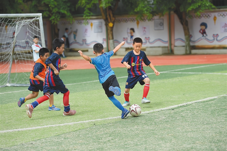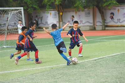 作为全国校园足球特色学校,海口市英才小学通过开设足球课程、开展校园足球联赛等方式普及校园足球文化,助力学生健康成长。