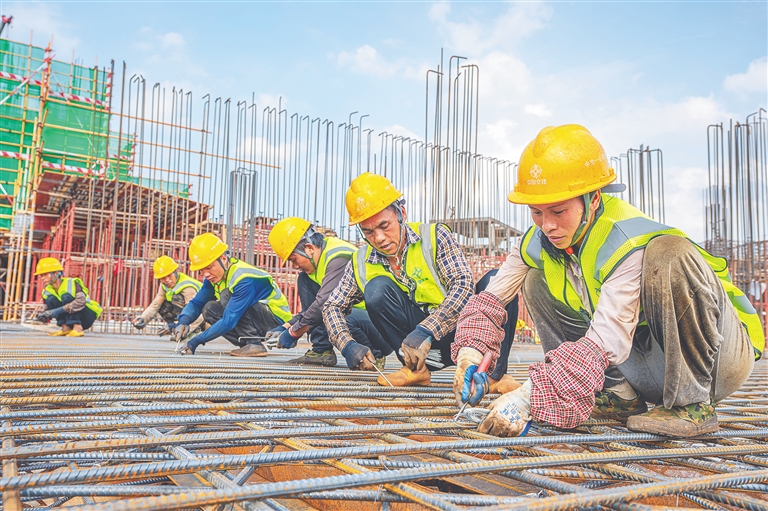5月16日,由中交一公局集团承建的海口江东新区椰青园S01项目现场,建设者奋战在一线工地,加快推进江东新区回迁房建设。