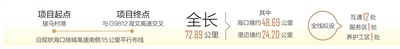 该项目起点接马村港,沿现状海口绕城高速南侧15公里平行布线,终点与G9812海文高速交叉,新建堆玉枢纽互通,全长72.89公里,其中海口境约48.69公里,澄迈境约24.20公里。全线拟设互通12处,服务区1处,养护工区1处。