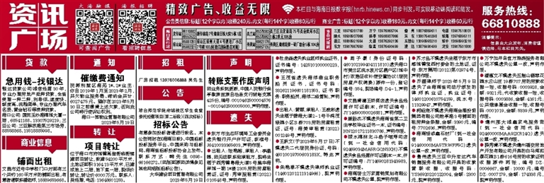 海口公司:国贸玉沙路椰城大厦一层,68541188、13307529219;三亚公司:三亚解放路第三市场旁,88558868、13518885998。