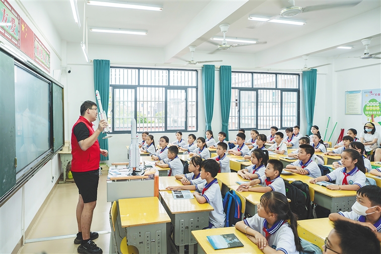 文昌中小学把航天教育列入校本课程,丰富的航天科普教育满足了学生对未知以及未来的深层探索兴趣。