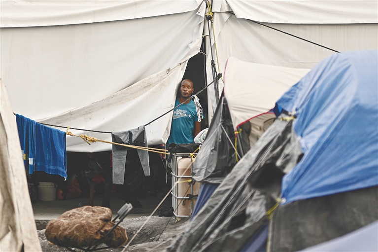 在芝加哥,政府官员声称无力承担为所有移民租住旅馆的费用,本月把多座公园的运动场更衣室改作移民“临时休息室”,还有数以百计无处容身的移民只能睡在警察局的地板上。