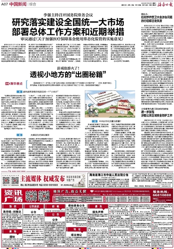 研究落实建设全国统一大市场 部署总体工作方案和近期举措