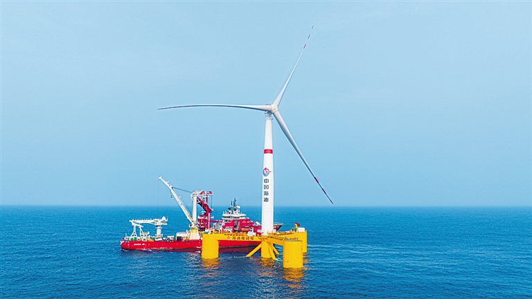 我国首座深远海浮式风电平台“海油观澜号”。 (中国海油供图)