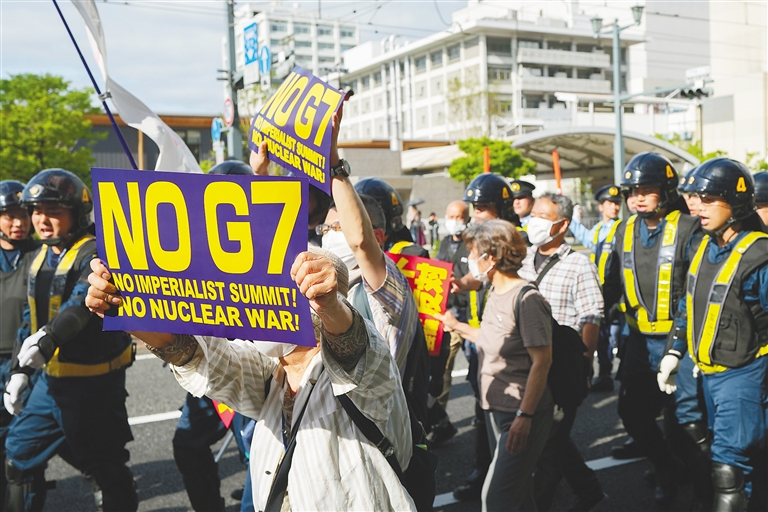 连日来,日本多个团体联合多国人士多次发起声势浩大的集会游行,抗议19日至21日在广岛举行的七国集团(G7)峰会。
