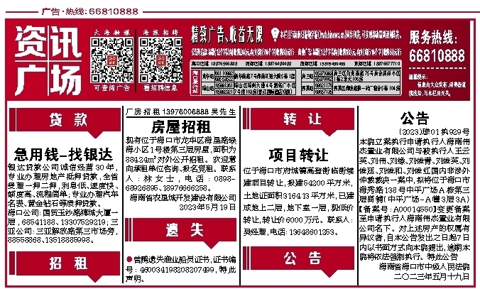 海口公司:国贸玉沙路椰城大厦一层,68541188、13307529219;三亚公司:三亚解放路第三市场旁,88558868、13518885998。