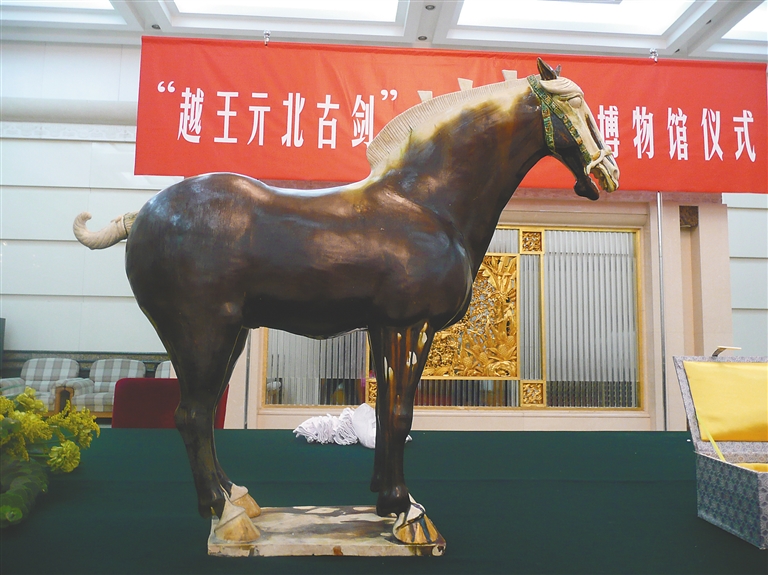 2008年10月11日,在财政部和国家文物局的支持下,中国文物信息咨询中心与海南省博物馆在北京人民大会堂签订协议,将中国文物信息咨询中心所藏越王亓北古剑、唐三彩马、宋青白釉花口凤首壶移交海南省博物馆长期借藏。这3件文物的到来,瞬间使省博物馆有了蓬荜生辉的气象,成为开馆初期名副其实的“镇馆之宝”。