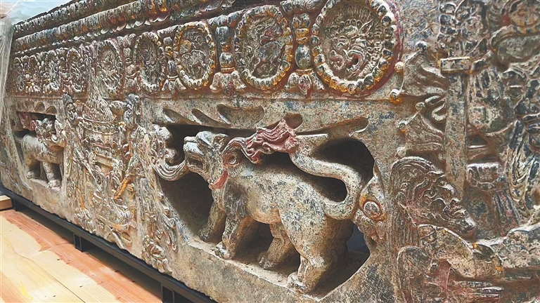 从文物的角度讲,围屏石榻并不具有普及性,因此人们对这种文物了解并不多。在美国返还中国文物这一大背景下,围屏石榻才进入大众视线。根据考古资料得知,围屏石榻是北朝至隋唐时期流行在北方地区的一种特殊的墓葬用具,用石头制作成床的样式,主要用来放置骨骸,根据当时人的习惯和审美偏好,石床上部、左右两侧以及背后都要加上一些屏风围栏。总体上讲,围屏石榻主要由榻座(腿)、榻板以及屏风三个部分构成。这次美国归还我国的两件文物,实际上是围屏石榻上的部分构件,即榻座(腿)。
