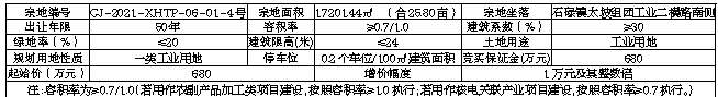 二、竞买申请人需具备的条件:(一)中华人民共和国境内外的法人、自然人和其他组织均可申请参加,申请人应当单独申请。属境外机构和个人(含港、澳、台地区)申请参与竞买的,按照规定需提交相关主管部门核发的《外商投资企业批准证书》和《营业执照》。(二)申请人拟成立项目公司或全资子公司进行开发建设的,应在竞买申请书中明确项目公司或全资子公司的出资构成、成立时间等内容,申请人在项目公司出资比例不得低于50%(不含50%),由项目公司或全资子公司与我局签订《国有建设用地使用权出让合同》,办理土地使用权登记手续。(三)有下列情形之一的申请人,不得参与本次竞买:1.凡在海南省范围内有严重违反土地出让合同、闲置土地、拖欠地价或有其他不良记录的,及与其有参股、控股、投资关系的法人及其他组织。2.失信被执行人。(四)地块产业准入条件:专业设备制造业(模具制作)。