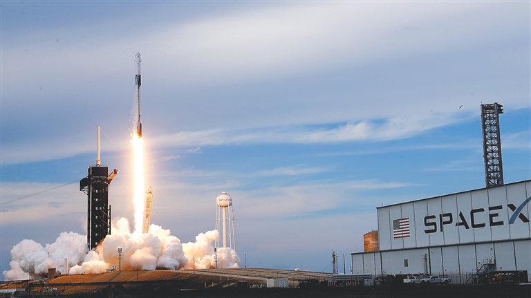 5月21日,“龙”飞船搭乘“猎鹰9”火箭从美国佛罗里达州肯尼迪航天中心发射升空。