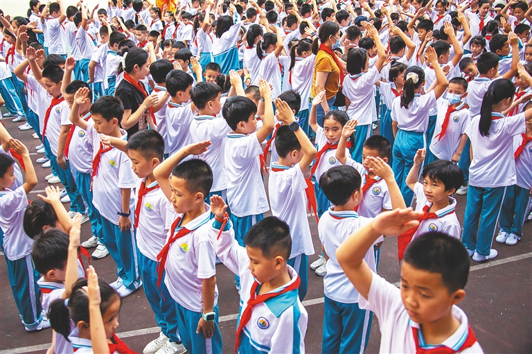 5月22日上午,儋州市那大第一小学为一年级390名学生举行少先队员入队仪式。据了解,本次活动旨在庆祝“六一”儿童节,活跃校园文化,为少先队注入新的活力,培养少年儿童爱党爱国情怀,展示新队员风貌,争当“健康阳光、好学上进、勤劳诚信、文明朴实”特色印记的少先队员。