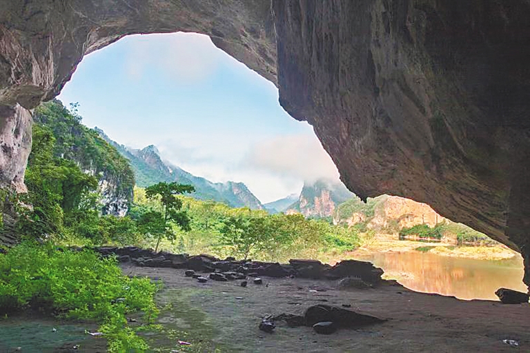 置身洞中,时间都过得慢了下来,在大自然的鬼斧神工面前,人类显得十分渺小。向洞外望去,南尧河水清又清,位于南尧河上的“十里画廊”,以奇、险、峻而闻名,绮丽秀美,富有诗意。崖岸上有千奇百怪的图案,整体看上去宛如一幅巨大的印象派画卷。