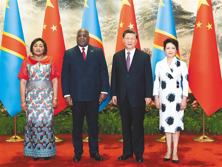 习近平指出,中刚两国在争取民族解放运动和反对殖民侵略的历史进程中建立了深厚传统友谊,是拥有广泛共同语言、并肩同行的战略伙伴。近年来,双方各领域合作成果丰硕,中国连续多年成为刚果(金)最大贸易伙伴和最大外资来源国,双方已经结成紧密的利益共同体和命运共同体。中国式现代化的成功经验表明,发展中国家有权利也有能力探索符合本国国情的现代化道路。中方愿同刚果(金)加强发展战略对接,在发展振兴的道路上相互支持、共谋合作、共促发展、共同进步。相信中国高质量发展将为刚果(金)提供更多合作机遇和更广阔市场,推动双边关系得到更大发展。