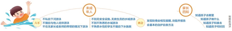 “在防溺水安全教育的内容中,最让我们耳熟能详的莫过于‘六不两会’和‘四知’。”张富国说,要通过科普教育让学生树立安全意识、危机意识,牢记“六不两会”,“六不”即不私自下河游泳,不擅自与他人结伴游泳,不在无家长或老师的带领的情况下游泳,不到无安全设施、无救生员的水域游泳,不到不熟悉的水域游泳,不熟悉水性的学生不擅自下水施救;“两会”即发现险情会相互提醒、劝阻并报告,会基本的自护、自救方法。