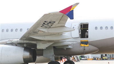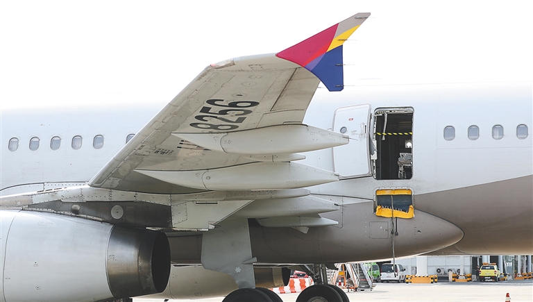 据韩联社报道,当地时间中午12时45分左右,这架来自韩国济州岛的客机搭载194人,飞行在距离地面200多米的高度,还剩几分钟就要在大邱机场着陆,一个紧急出口舱门突然被一名坐在附近的男子打开。