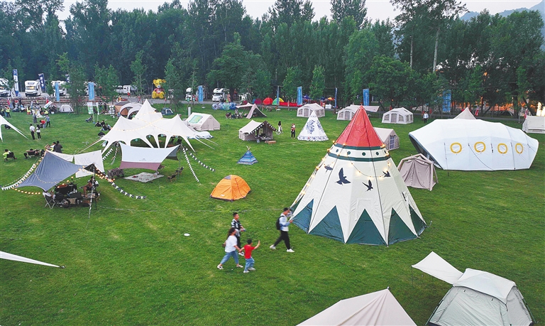 5月26日晚,2023首届石家庄房车露营大会在河北省石家庄市灵寿县花溪谷房车露营地开幕。此次活动聚焦研学、阅读、音乐等露营旅游休闲文化,打造当地文旅融合发展新名片。新华社发