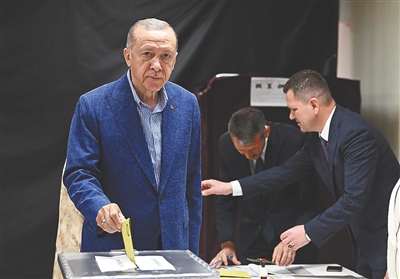 土耳其总统选举第二轮投票当地时间28日8时(北京时间13时)开始进行,现任总统埃尔多安和反对党阵营“民族联盟”候选人克勒奇达尔奥卢展开最终角逐。图为土耳其现任总统埃尔多安在伊斯坦布尔参加投票。新华社发