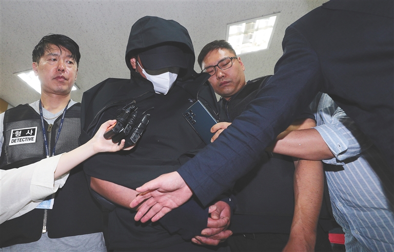 韩国警方27日说,前一天在韩亚航空一架客机着陆前打开机舱门的乘客告诉警方,他这么做是因为感到“透不过气”,想要“快点下飞机”。韩亚航空一架搭载194人的客机26日在韩国东南部城市大邱准备着陆,在距离地面200多米的高度时,一个紧急出口舱门突然被一名坐在附近的男子打开,导致大风灌进机舱,乘客陷入恐慌。客机最终在舱门打开的状态下完成降落,机上乘客没有严重受伤,但有12人在惊恐中出现呼吸困难等症状,其中9人被送往医院。图为5月28日,在韩国大邱,在空中打开飞机舱门的男子前往法庭。