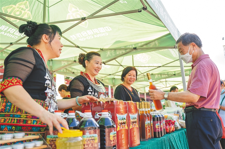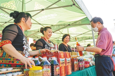5月27日,在海口市龙华区双创广场,海南省“消费助农大集市”双创广场专场活动暨“2023年消费帮扶月” 启动,活动现场设66个帮扶产品展销摊位,来自14个市县的68家农民专业合作社和企业,带来160多种时令水果蔬菜、海产品等特色农产品,吸引了广大党员干部、职工群众竞相采购。