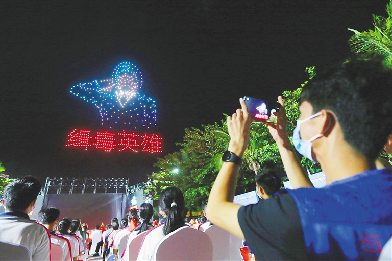图2 在三亚市禁毒主题文艺晚会上,626架无人机组成图案向缉毒英雄致敬。(资料图)