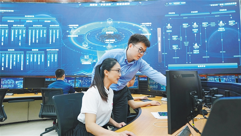 图1 在海南省数据大厅,工作人员展示海南省“审管法信”一体联动机制数字化驾驶舱。 本报记者 张茂 摄